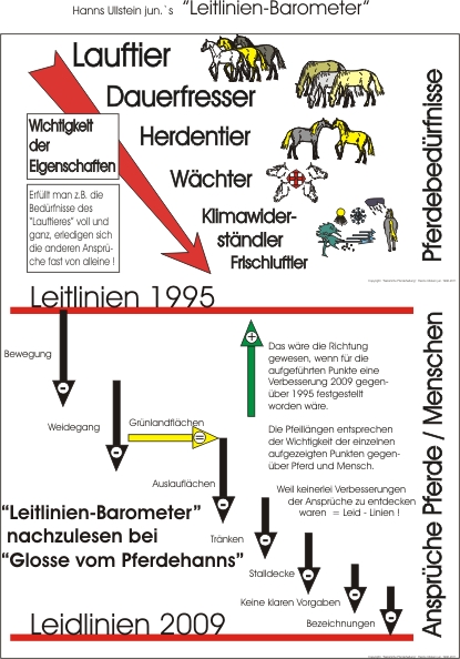 Wie man aus der Zeichnung leicht entnehmen kann, zeigt das "Leitlinien-Barometer" nur kräftige "Tiefs" an, wo man eigentlich eine Verbesserung für Pferd/Mensch erwartet hätte.