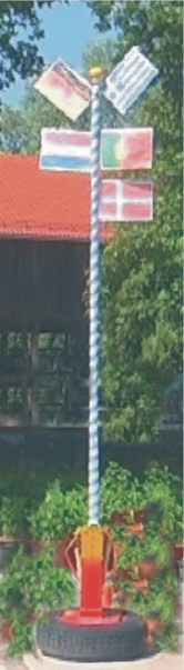 Drei Flaggen sind nach der Spielpause am "Fußball-Maibaum" nach unten gerutscht. .